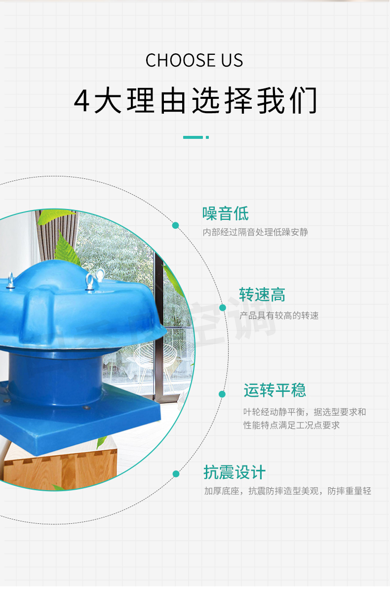 靖江市四季風空調設備有限公司——DWT系列軸流式屋頂風機分為二大類型,其一,軸流式屋頂風機:型號為DWT-II型、DWT-III型二種形式,宜適用于風量較小而壓力要求較高的場合。